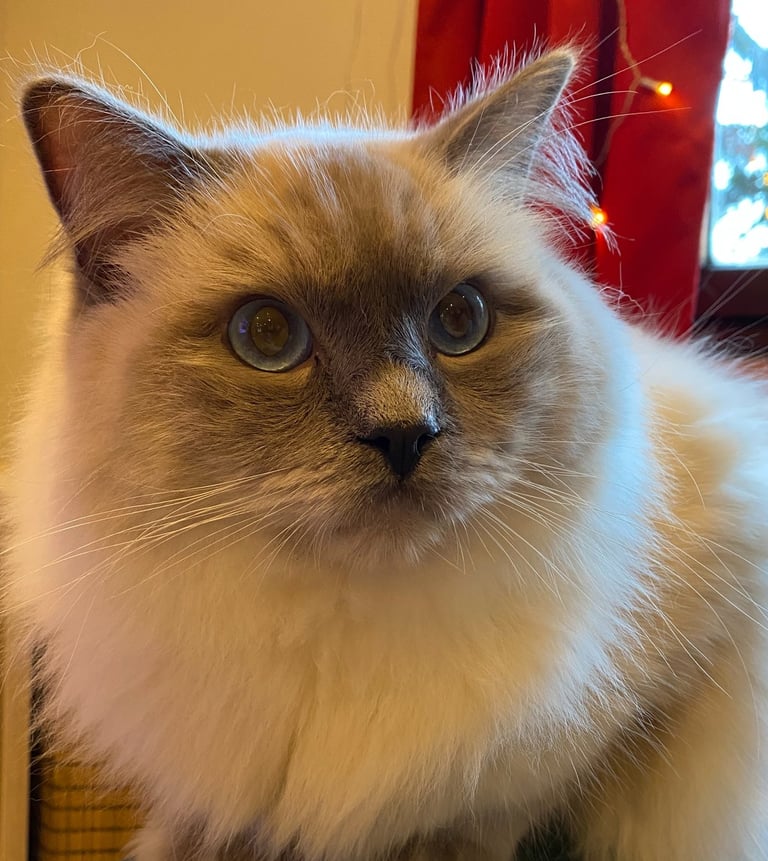 Au printemps, ce jeune homme venu du Sud de la France est venu compléter notre famille. Sacré parleur et pot de colle, il a le caractère parfait du Sacré de Birmanie. Joli nez romain et yeux bleu profond, cela a été une évidence quand j'ai croisé sa route. Encore un peu de patience et il fera un super Papa !