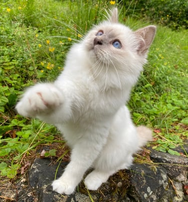 Éleveuse professionnelle, je suis titulaire de l'ACACED option chat et chien. Les chats que nous élevons partagent notre quotidien. Ils sont donc habitués aux bruits de la maison et aux chiens. Ils vivent au sein de la famille, avec les enfants et sont manipulés dès leur plus jeune âge. La chatterie est donc professionnelle à dimension familiale. C'est un choix qui nous tient à cœur.